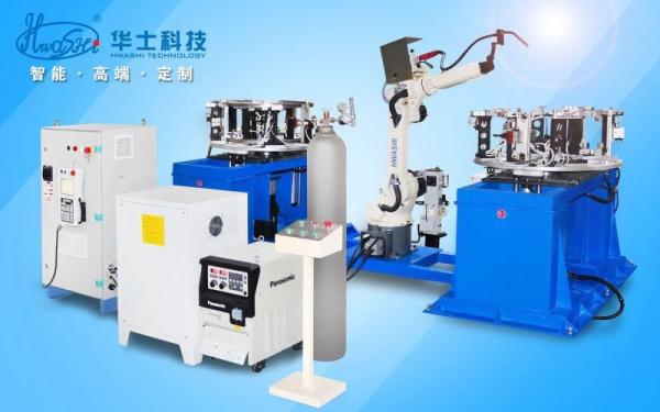 This automatic robot work station to achieve automatic work piece clamping and robot automatic welding process. It is designed with two sets of welding positioner. When one is under welding process, another one could be prepared for loading work piece.
